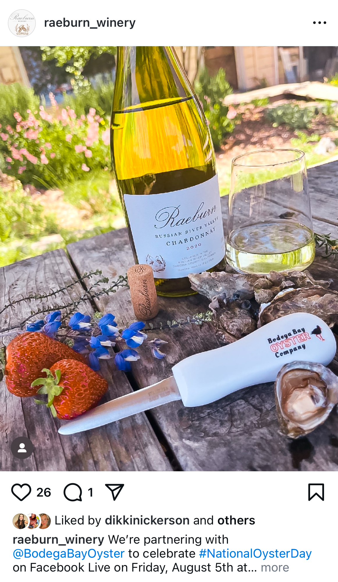 Raeburn Winery & Bodega Bay Oyster Company Collaboration for National Oyster Day Collaboration featured a series of cross-promotional social media posts and a Facebook Live session.